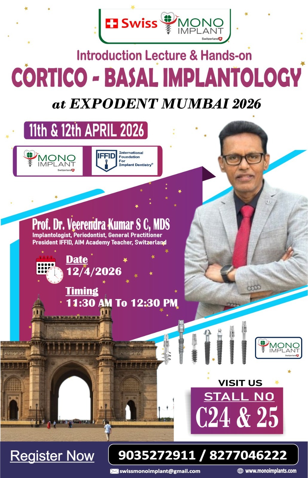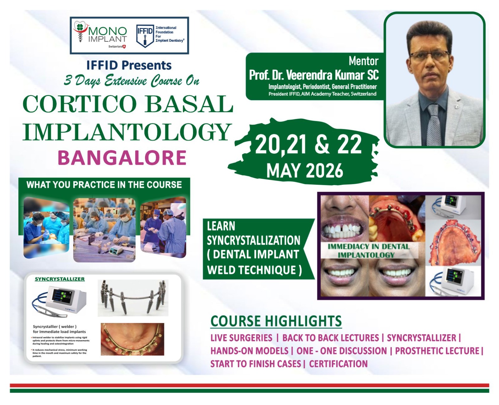 “Monoimplants Switzerland regularly conducts advanced training programs across India and internationally, empowering clinicians with the latest in cortico-basal implantology.”to register call 9844016274